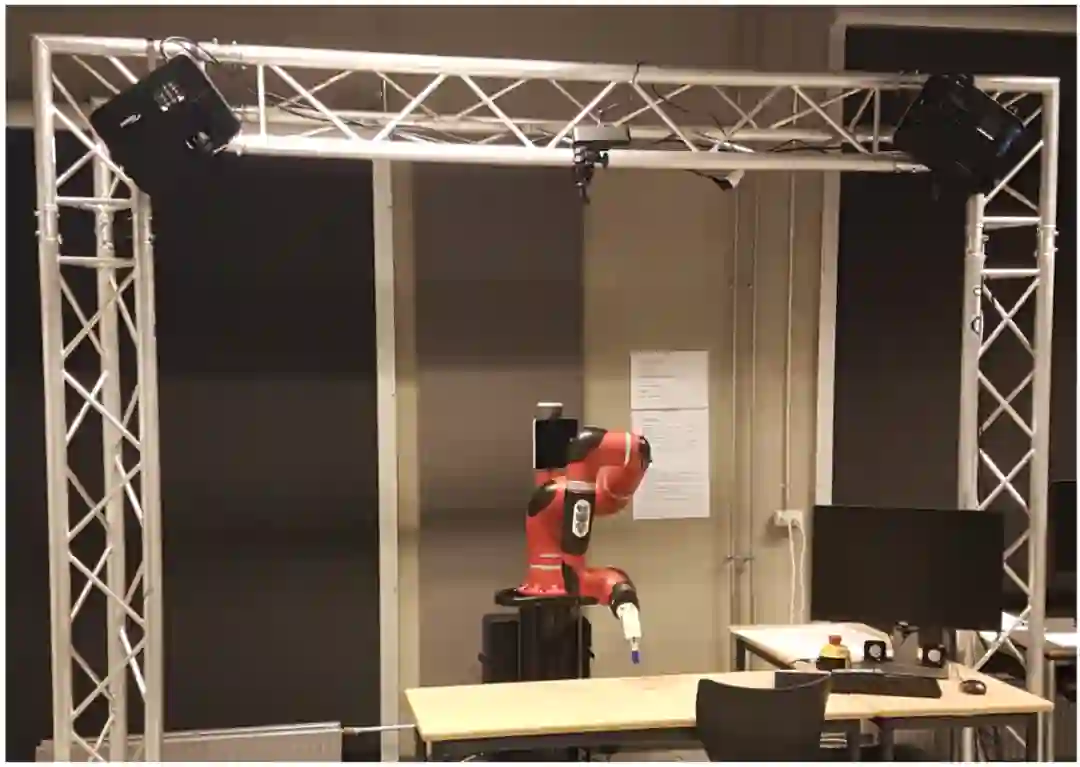 图 6. 由投影仪、红外摄像机、Sawyer 机器人组成的 HRC 装置