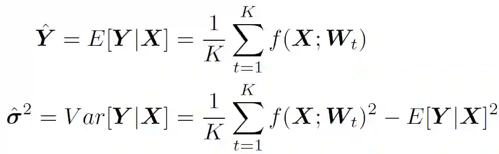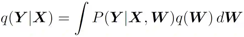 贝叶斯深度神经网络将概率分布置于网络中的每个权重上,因而使网络具有随机性,能够捕捉不确定性。利用后验概率 q(W)的一个 Dropout 近似,得到预测分布如下: