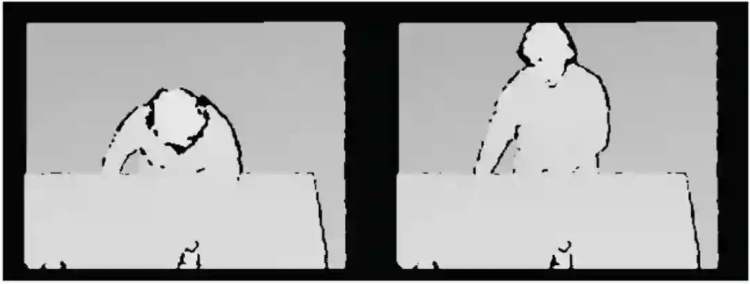 图 7. 图像来自于自上而下的红外摄像机。左图:用户端坐。右:用户向后倾斜