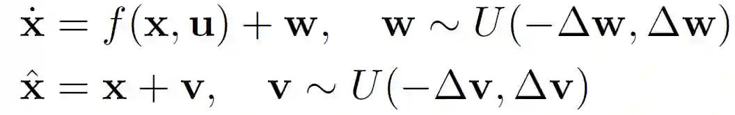 其中,x 表示系统状态,x^ 为有噪观察值,u 为控制输入动作,w 和 v 分别为过程和测量噪声。U 为均匀分布。将机器人动力学简化为随机控制仿射单积分动力学的形式: