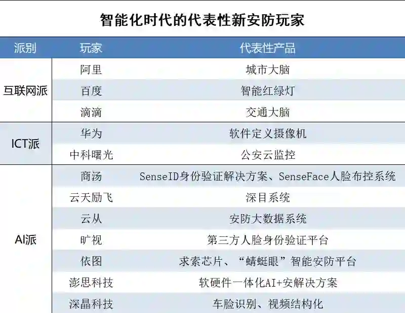 当前,安防行业的新玩家总共分了三类:其一是以商汤、依图等为代表的一众AI视觉企业;其二是以华为为代表的ICT巨头,其三则是以阿里为代表的互联网巨头。