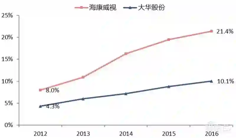首先是关于谁是第一,海康威视与大华之间的差距正是在这时起逐渐越拉越大。