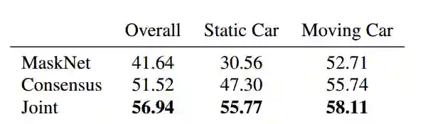 如下表5所示,为在KITTI2015数据集上运动分割的结果。