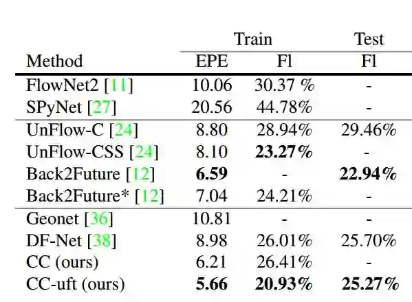 如下表4所示,为在KITTI2015数据集上不同方法进行的光流估计结果。