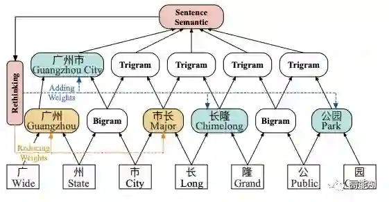 Lexicon-Based CNNs:采取CNN对字符特征进行编码,感受野大小为2提取bi-gram特征,堆叠多层获得multi-gram信息;同时采取注意力机制融入词汇信息;