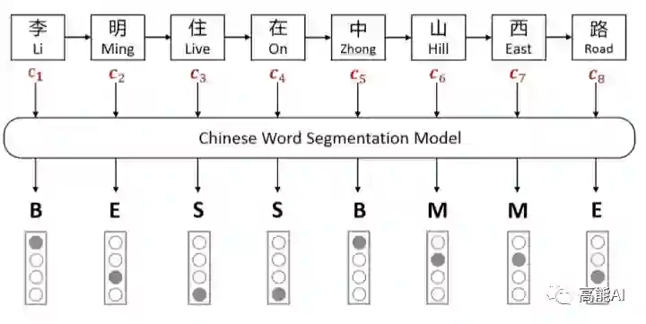 很容易理解,上述公式则将BMES对应的词汇编码与字符编码进行拼接,其计算方式为: