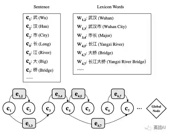 Word-Character Containing graph (C-graph):字与字之间无连接,词与其inside的字之间有连接。