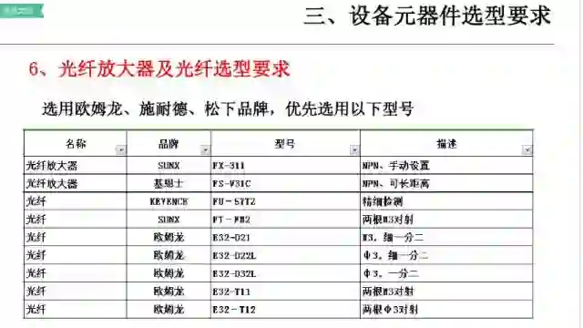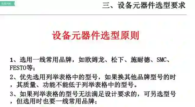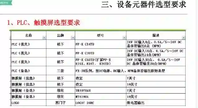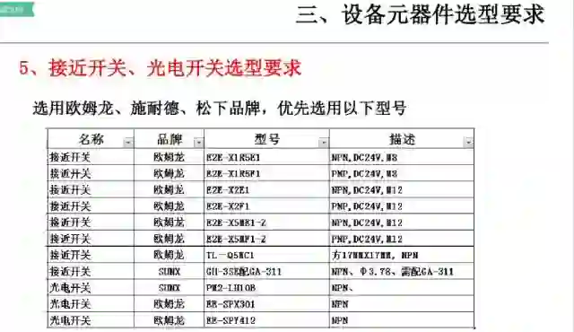 4、主要部件选型:在可行性方案经由客户确认后,开始进行自动化部品选型;(一般在做可行性方案时,也需要进行初步的选型动作)
