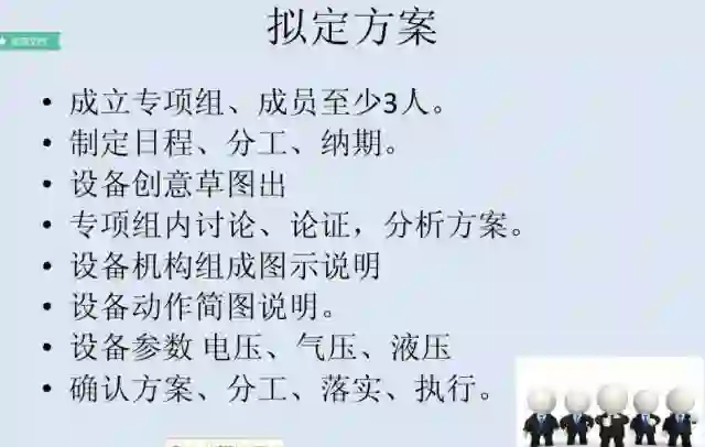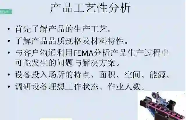 1、收集信息:详细了解原有工序、生产工艺或生产设备的所有具体细节,和现有产能、人工数量、现有多少工序、工序品质(或产品品质)、原辅材料等情况。最好能到生产线上去向主管工程师和操作员工进行多层面的询问、勘察和了解,并了解工作场地中的环境要求,以及是否有什么特殊的要求;
