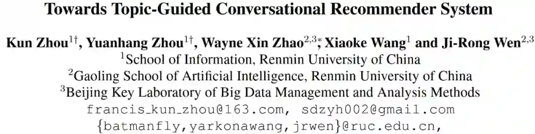 论文标题:Towards Topic-Guided Conversational Recommender System