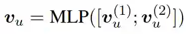 这里的关键是得到一个有效的用户表示用于推荐。本文分别使用BERT[8]和SASRec[9]来编码历史对话和用户交互序列,将得到的嵌入进行拼接送入MLP,得到用户的表示: