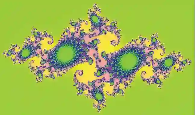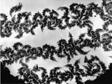 确定“海马”图形的基本形成机制是极富挑战性的,这一图案与一种特殊的结构相类似,这源于Julia对复杂空间中函数的纯粹数学映射:z→z2+c,其中c=-0.74543+0.1130i. 在复平面中,水平坐标代表实数,垂直坐标代表虚数. 每个Julia集合(有无限多个点)都决定一个常数c,它是一个复数. 在复平面上任意取一个点,其值是复数z. 将其代入方程z→z2+c,进行反复迭代运算,即用旧的z 自乘再加上c 后的结果作为新的z;再把新的z 作为旧的z,重复运算,就得到了令人难以置信的图案,图8是我们运用上述公式模拟得到的图形,这是数学上的一种类似我们前面得到的“海马”类的分形.