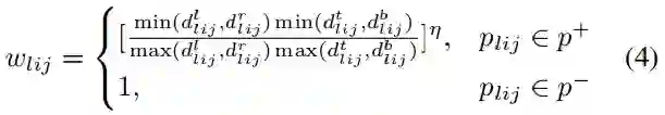 范围为 0~1,公式保证了目标边界处的 points 权重为 0,目标中心处的 ponit 权重为 1。