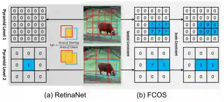 (1)RetinaNet 是根据 anchor box 和 ground truth 的 IOU 阈值定义正负样本,这样会每个样本都是打上非正即负以及 ignore 的标签,而且 anchor box 的 num,size,aspect ratios 等等都是超参数;