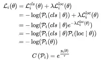 与 FreeAnchor 相似,将分类和定位联合看成极大似然估计问题,学习出样本的置信度 Confidence Weighting,即下面的 C(Pi):