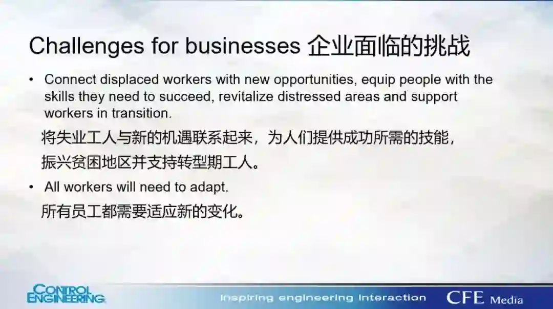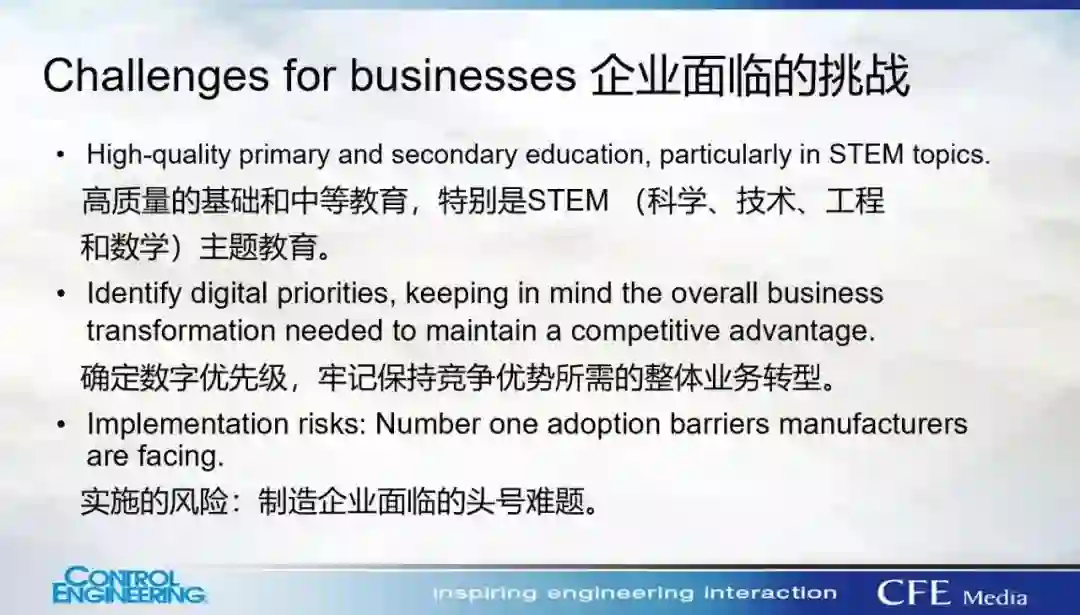 例如,很多岗位将从最基本的搬运、手动记录、产线衔接等方面转移到数字化设备维护、IT 信息化及数据分析等方向。如果将这种需求进一步前推,事实上对高质量的基础和中等教育,尤其是在STEM(科学、技术、工程和数学)和职业技术等方面的教育能力都会提出要求。这与其说是企业独自面临的挑战,不如说是整个社会需要为适应数字化转型趋势而做出的准备。