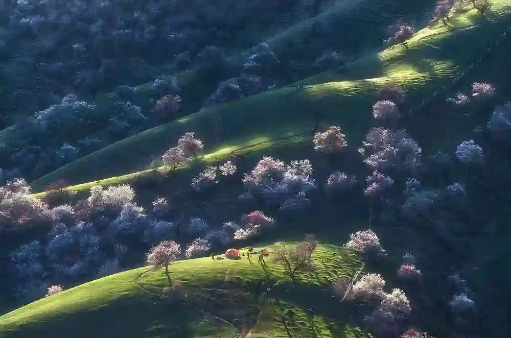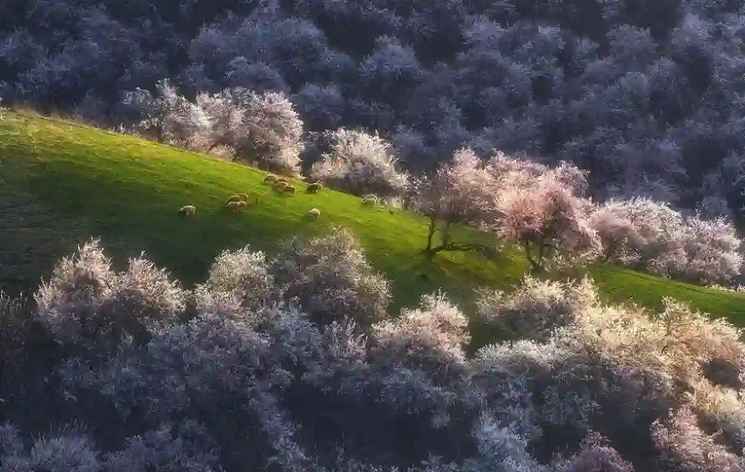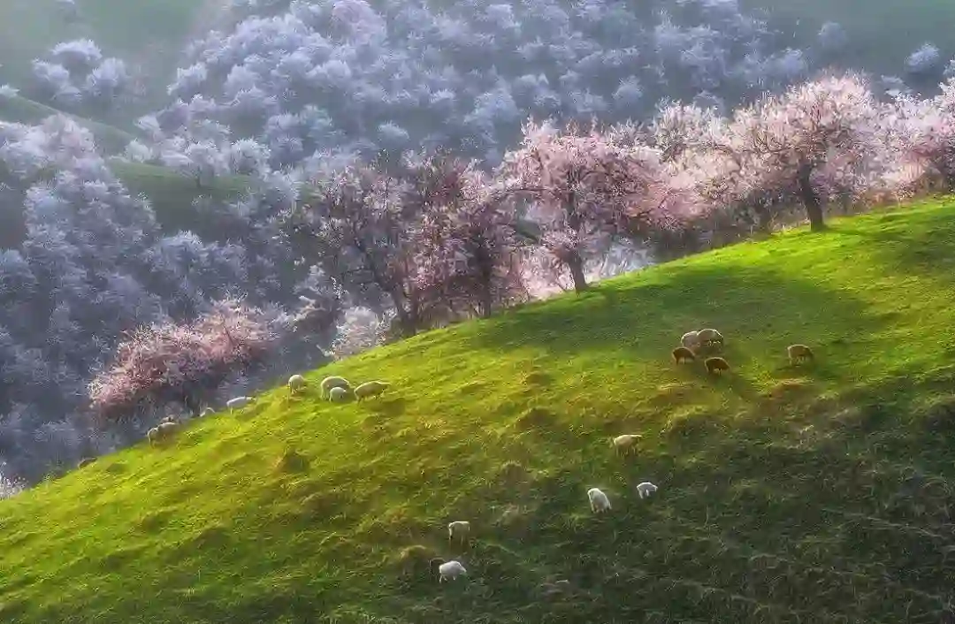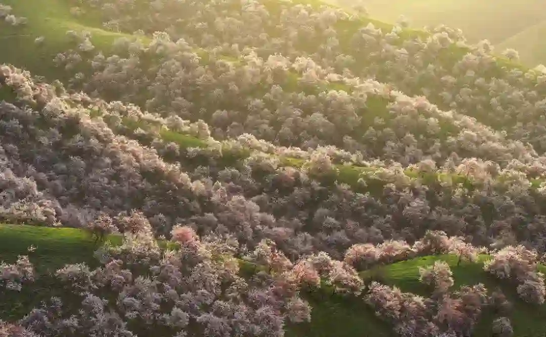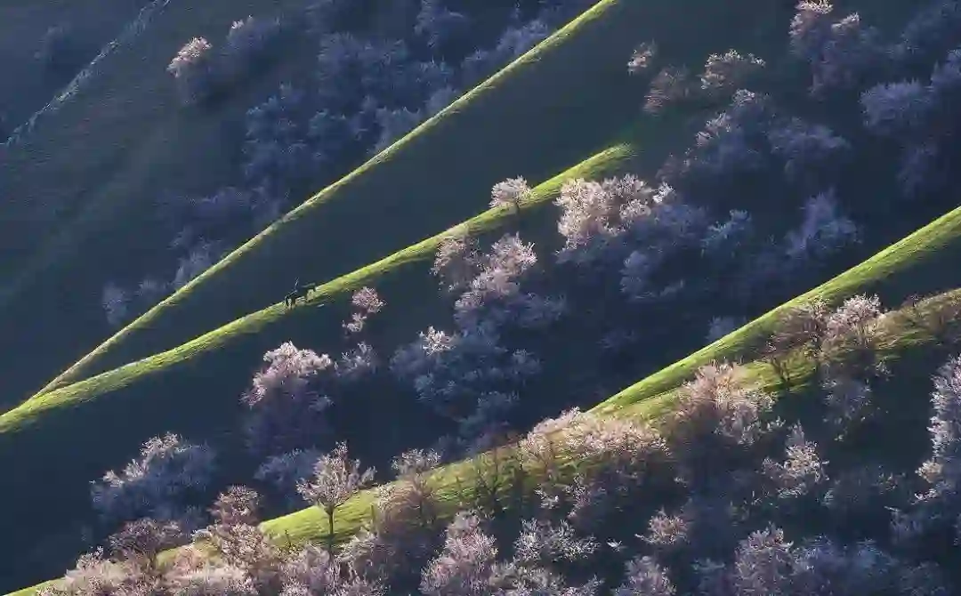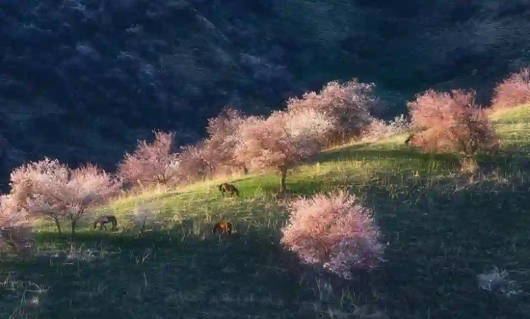 攻略:在以巩留,库尔德宁,霍城为核心的伊犁河谷,野苹果,野核桃等野果花在四月陆续开放。吐尔根的野杏花大气磅礴,而伊犁河谷的野果花则更为秀美。野果花的花期比吐尔根的杏花花期要晚一些,因地势的不同,会此消彼长的一直开到4月下旬。由于虫害以及天气和路途等不确定因素,这里的拍摄难度给的是四星半。