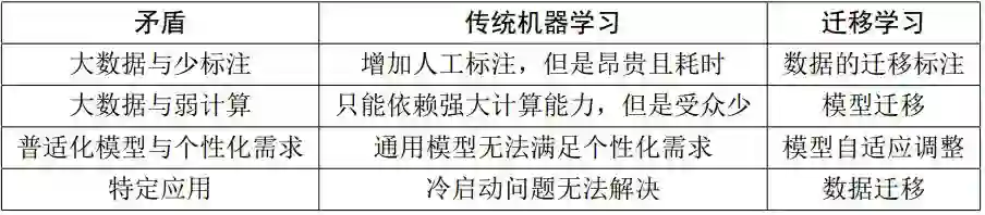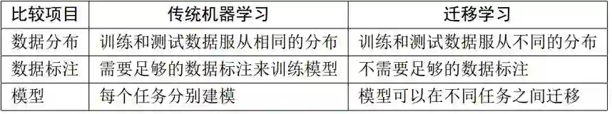 迁移学习属于机器学习的一类,但它在如下几个方面有别于传统的机器学习 (表 2):