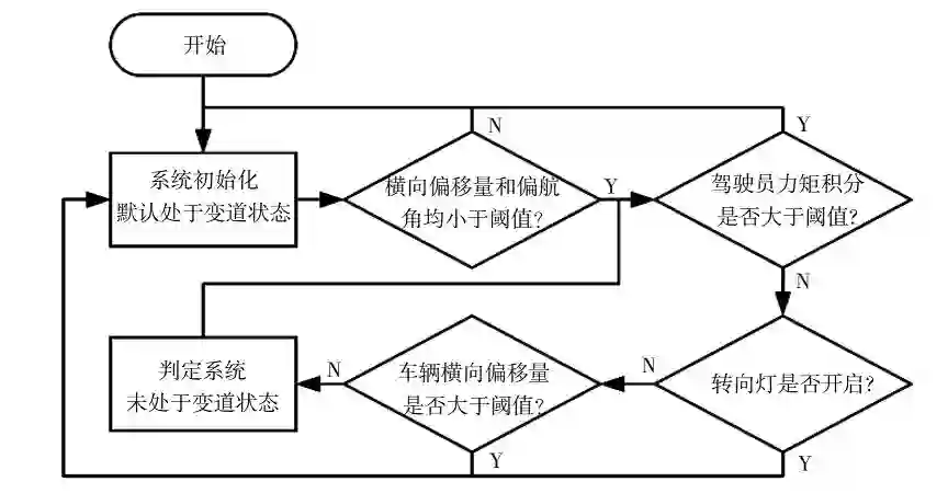 变道判断考虑驾驶员力矩、转向灯开关、车辆横向偏移量等状态,判断流程如图 7 所示。