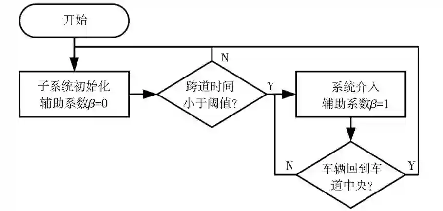 因此 TLC 条件仅作为 LKA 系统的介入条件,当 LKA 介入后,进行车辆返回车道中心判断,如果车辆横向偏移量和偏航角均小于设定阈值,则认为车辆返回车道中心,调整 β=0。