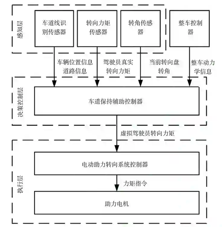 LKA 系统可分为感知层、决策控制层和执行层三部分 [11],如图 1 所示: