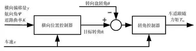 车道自动跟随控制器的结构原理如图 8 所示,可分为横向位置控制器和转向盘转角控制器。
