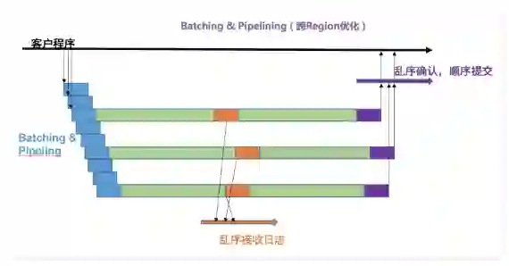 Pipeling 的引入,需要解决日志的乱序问题,特别是在异地场景下,window 加大,加大了乱序的概 率。X-Paxos 实现了一个高效的乱序处理模块,可以对底层日志实现屏蔽乱序问题,实现高效的乱序日志存储。