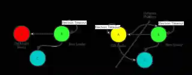 如上图所示,一个经典的三节点的 X-Cluster 集群,左边的 Case 是原 Leader A 节点宕机,因此 B 节点和 C 节点会在较长的时间内收不到 Leader 的心跳,因此在 一个选举超时周期后,B 节点开始尝试推选自己为 Leader, 并且 C 节点同意, 那么 B 成为新的主节点,恢复服务能力。