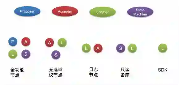 在经典的 multi-paxos 实现中,一般每个节点都包含了 Proposer/Accepter/Learner 三种功能,每一个 节点都是全功能节点。但是某些情况下并不需要所有节点都拥有全部的功能,例如: