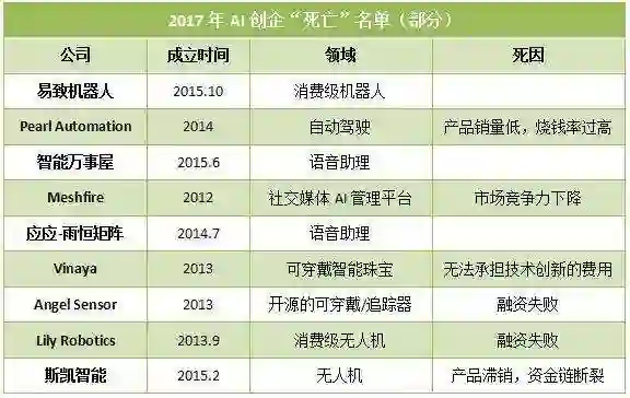 腾讯科技报道,2017年已经有60家P2P公司歇业,近4成亏损。人工智能创业公司的倒闭数量都快赶上P2P了,不能不让人担心。