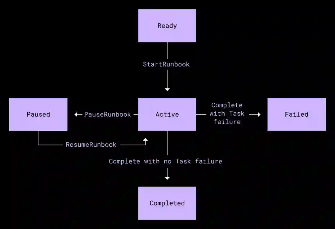 Runbook 状态机。一个 Runbook 由多个任务组成。