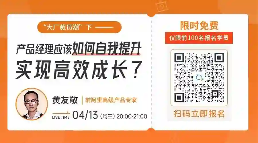 就在今晚!!!免费学习的机会来了!前阿里高级产品专家@黄友敬老师 带你拆解产品经理9大必备核心能力,4个实用方法帮你快速提升产品能力,让你高效成长!