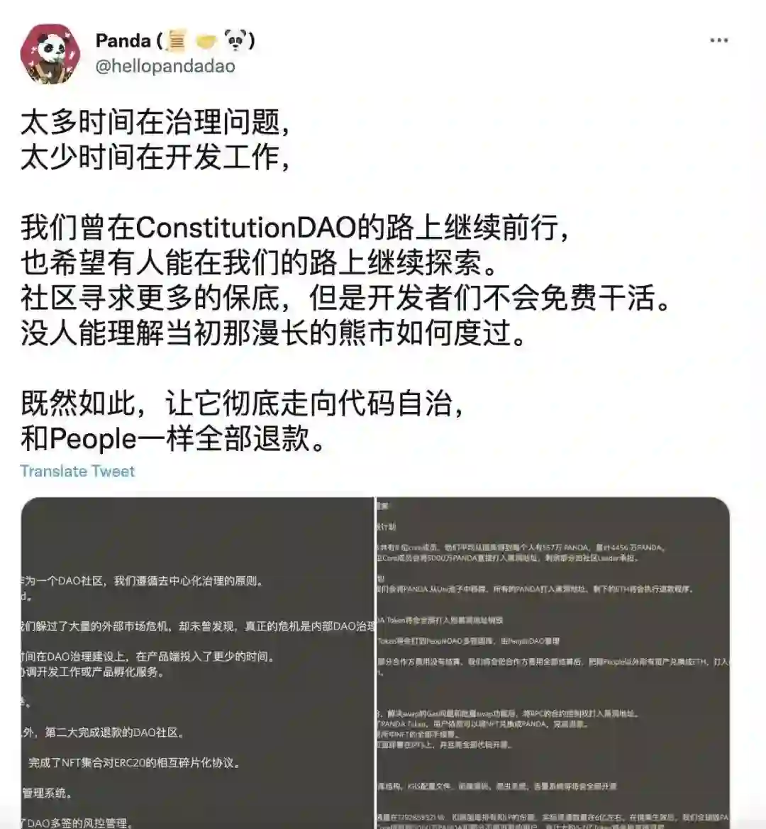 核心成员Panda在社交平台发文:太多时间在治理问题,太少时间在开发工作。