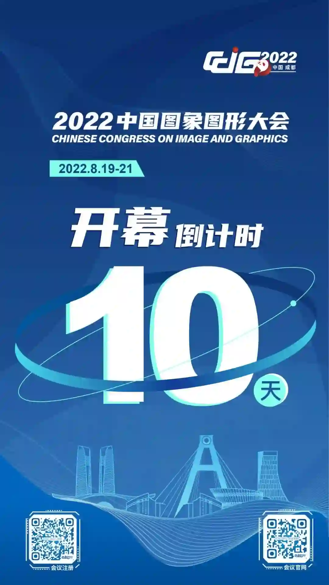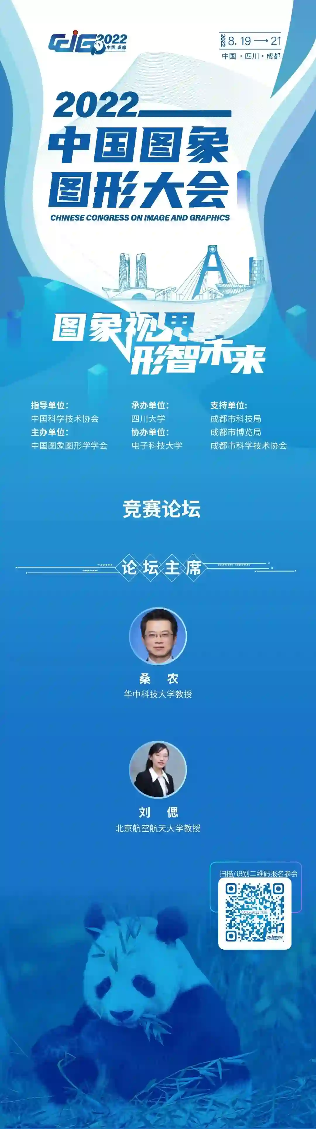 中国图象图形大会(CCIG 2022)将于2022年8月19-21日在成都盛大举办,大会以“图象视界,形智未来”为主题,由中国科学技术协会作为指导单位、中国图象图形学学会主办、四川大学承办、电子科技大学协办。