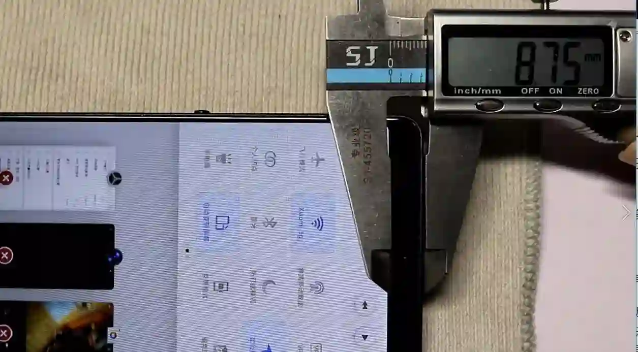 下巴上没有东西,跟额头对称设计的我们见多了。锤子上下都是 8.75mm,分毫不差。我专门调都调不出来,这是有多强迫症啊。