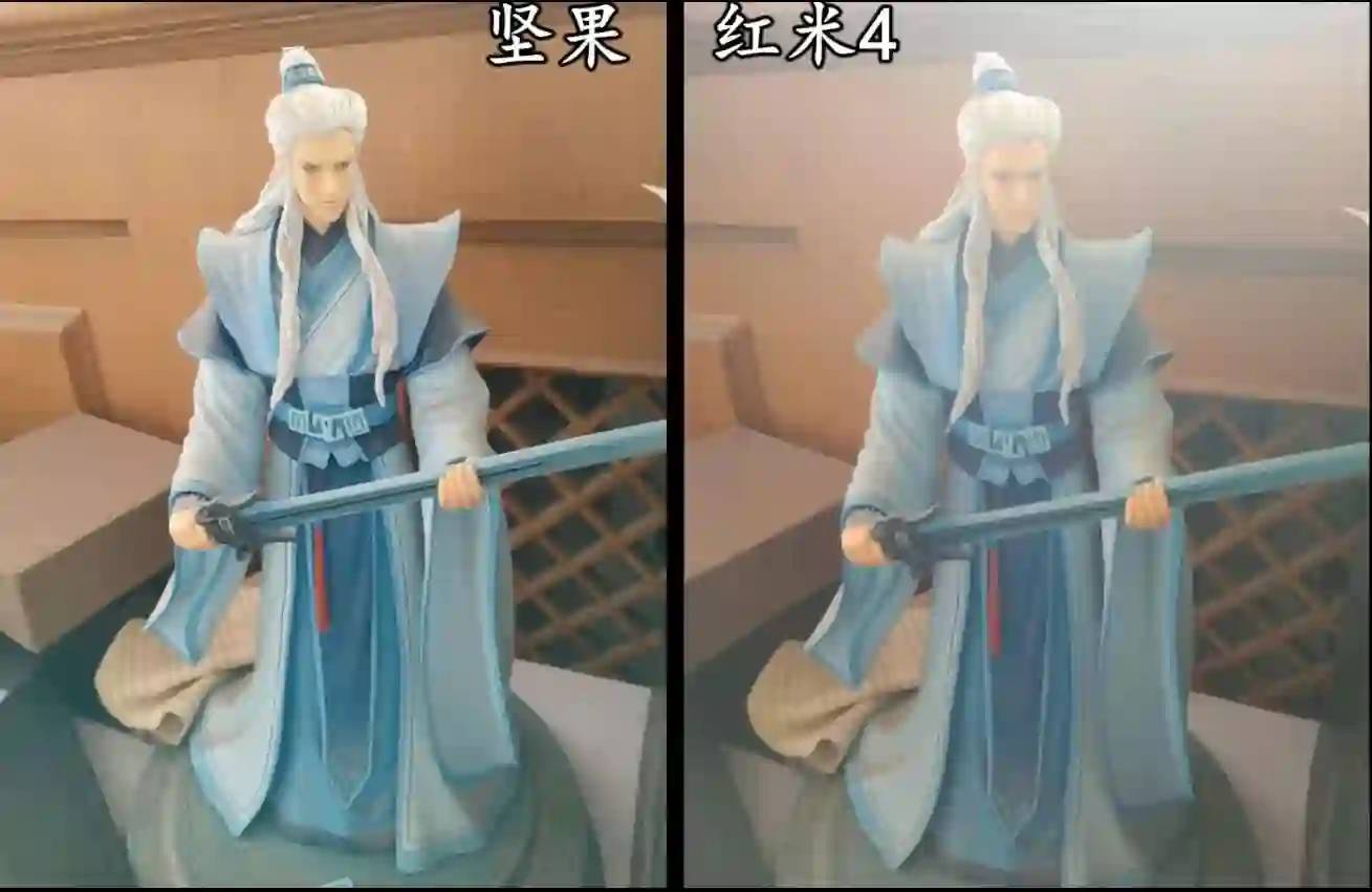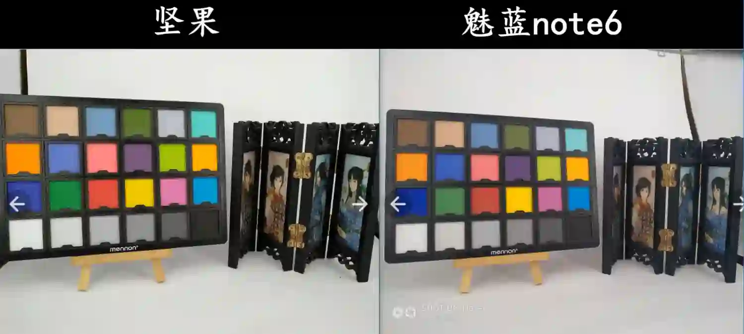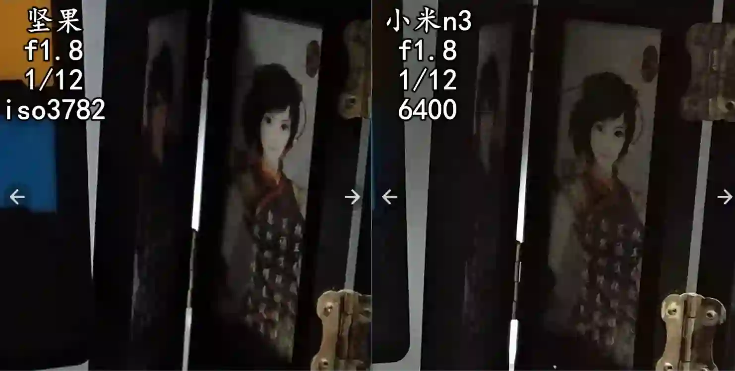最后的固定参数,2 秒快门和 100 的 ISO。魅蓝自戳双眼,小米拉稀倒地,坚果实至名归的取得了胜利。