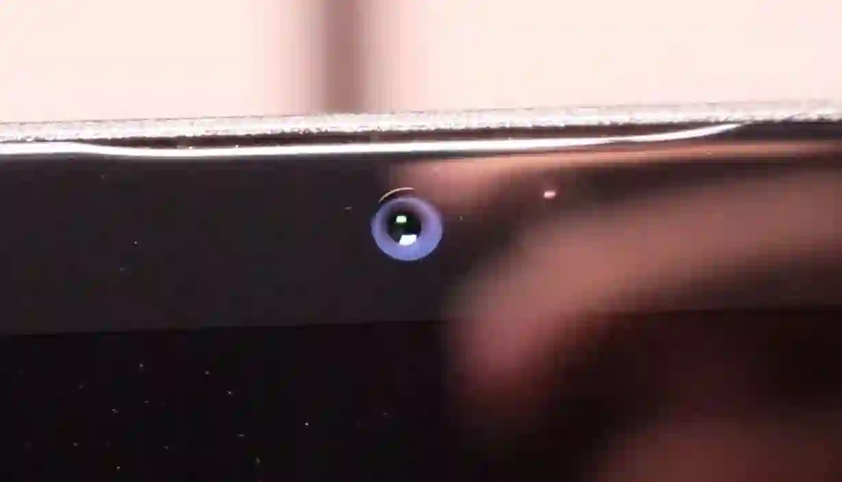 正面是 18:9 的圆角屏幕,额头能看到的只有居中的镜头,听筒隐藏在了顶部的开口内,不仔细看还真看不见。是细长形状过度的。如同一片二月的柳叶。看上去非常整洁一体。真实听筒位置其实是在镜头左边这里,不在中间,这个开条是为了对称好看。我们听一下听筒的效果。跟正常听筒并无二致。