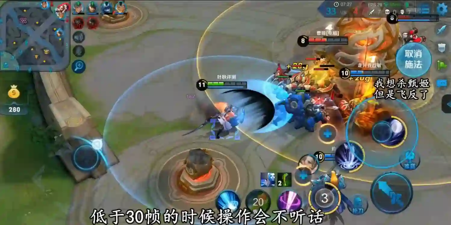 实测中复杂场景会出现突然的卡顿,操作会很不流畅,屏幕有反应画面没反应。就是明明手在拼命的滑,英雄就是不听话。帧数也会短暂低于 30 希望锤子可以进一步的优化。660 还能继续挖掘。测试系统为 4.0.2