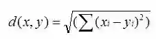 欧几里德距离(Euclidean Distance)是最初用于计算欧几里德空间中两个点的距离,假设 x,y 是 n 维空间的两个点,它们之间的欧几里德距离是: