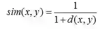 可以看出,当 n=2 时,欧几里德距离就是平面上两个点的距离。当用欧几里德距离表示相似度,一般采用以下公式进行转换:距离越小,相似度越大(同时,避免除数为0):