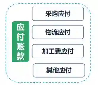 我们继续梳理应付款项,分为四个部分,分别是采购应付,物流应付,仓内加工费应付以及其他应付。