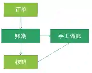 可以看到首先由客户订单接入,根据订单金额计入客户账期,每月根据客户账期手工线下做账生成对账单发送至客户,再生成应收款,并由客户打款后进行账单核销,这其中所有部分均为线下操作。
