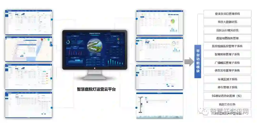 终端硬件(含监控、照明、屏幕、广播、传感器、5G等搭载硬件等)特点及区域应用需求,该运营管理云平台能实现对示范路、社区、公园、产业园区、学校、场区
