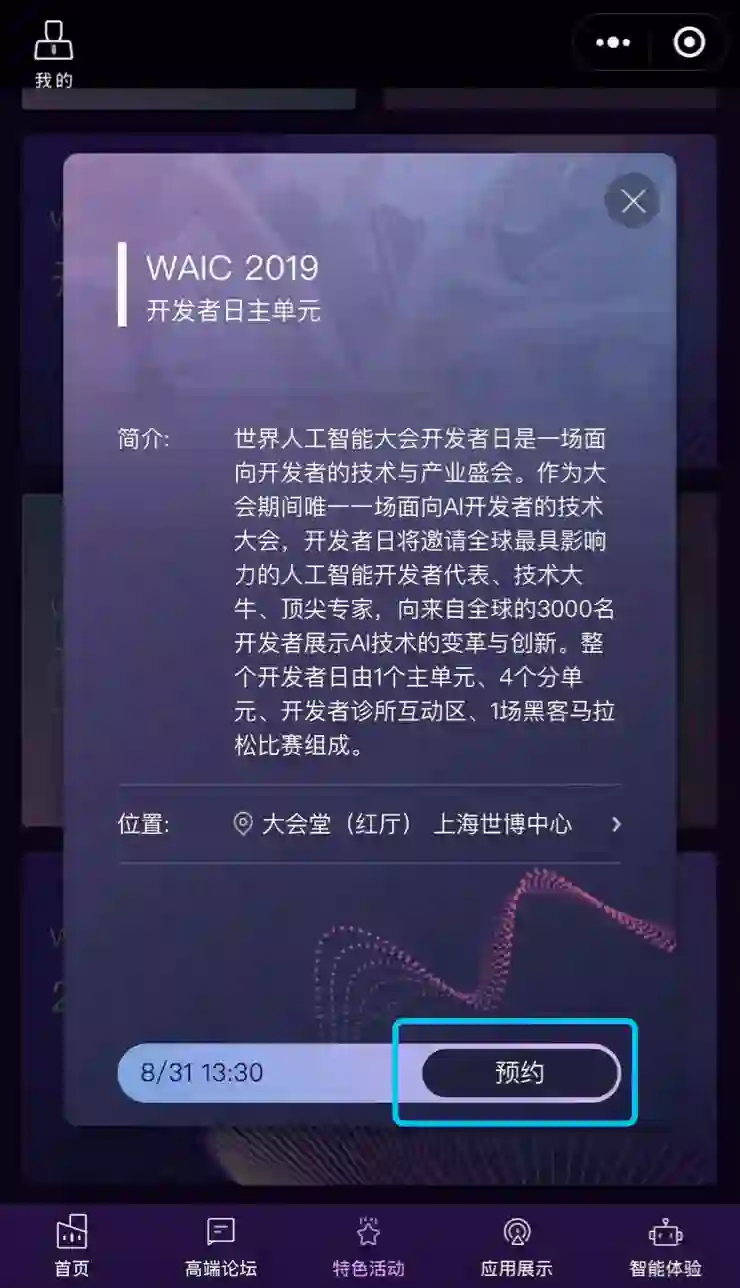 2019 年世界人工智能大会(WAIC)将于 8 月 29 日至 31 日 在上海举办,今年的WAIC 以「智联世界 无限可能」为主题,其中WAIC 开发者日是此届大会唯一一个面向开发者的特色活动,将于 8 月 31 日在上海世博中心大会堂红厅举行。