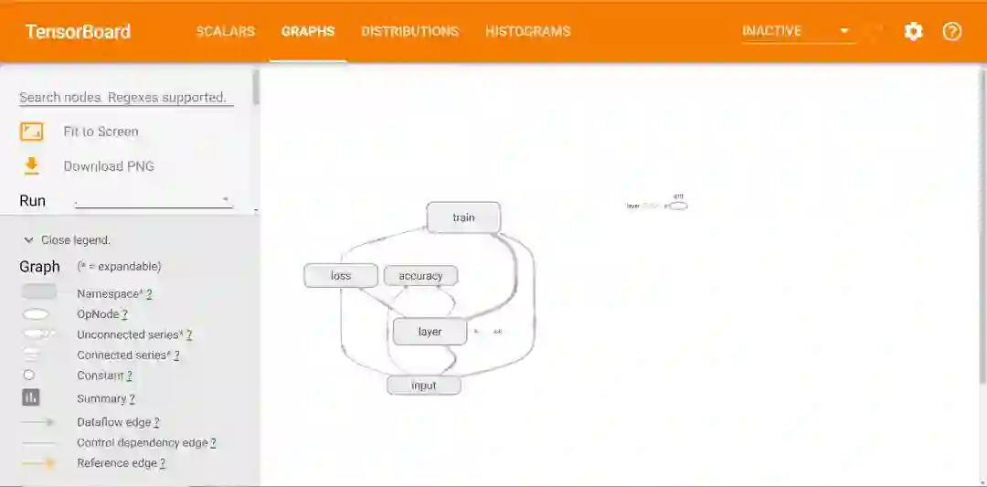TensorBoard是TensorFlow的一个可视化工具。我们用TensorFlow定义的数据以及做的运算都可以在TensorBoard中可视化的展现。其实TensorFlow可以抽象为一个图,每一个TensorFlow的操作都是往图中添加节点或者线。TensorBoard基本界面如下: