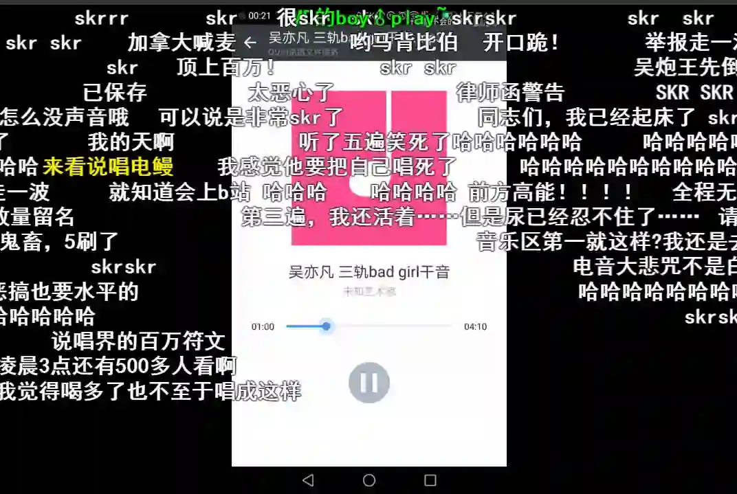7月25日早上,有JRs发了一条据称是“吴亦凡bad girl三轨干声”的“无修音”音频。音频中吴亦凡的唱功不敢恭维,有人戏称“知不知道我比菩萨还难过”(吴亦凡主演的电影《致青春》中的台词,用来嘲讽他演戏用力过猛)。