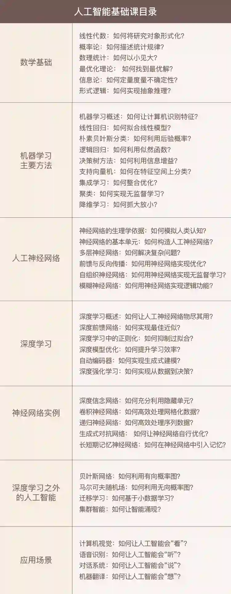 数学基础知识蕴含着处理智能问题的基本思想与方法,也是理解复杂算法的必备要素。今天的种种人工智能技术归根到底都建立在数学模型之上,要了解人工智能,首先要掌握必备的数学基础知识,具体来说包括:
