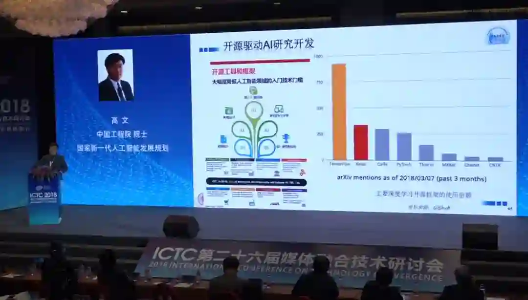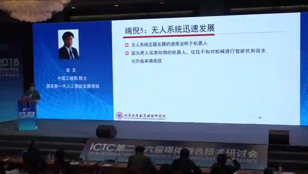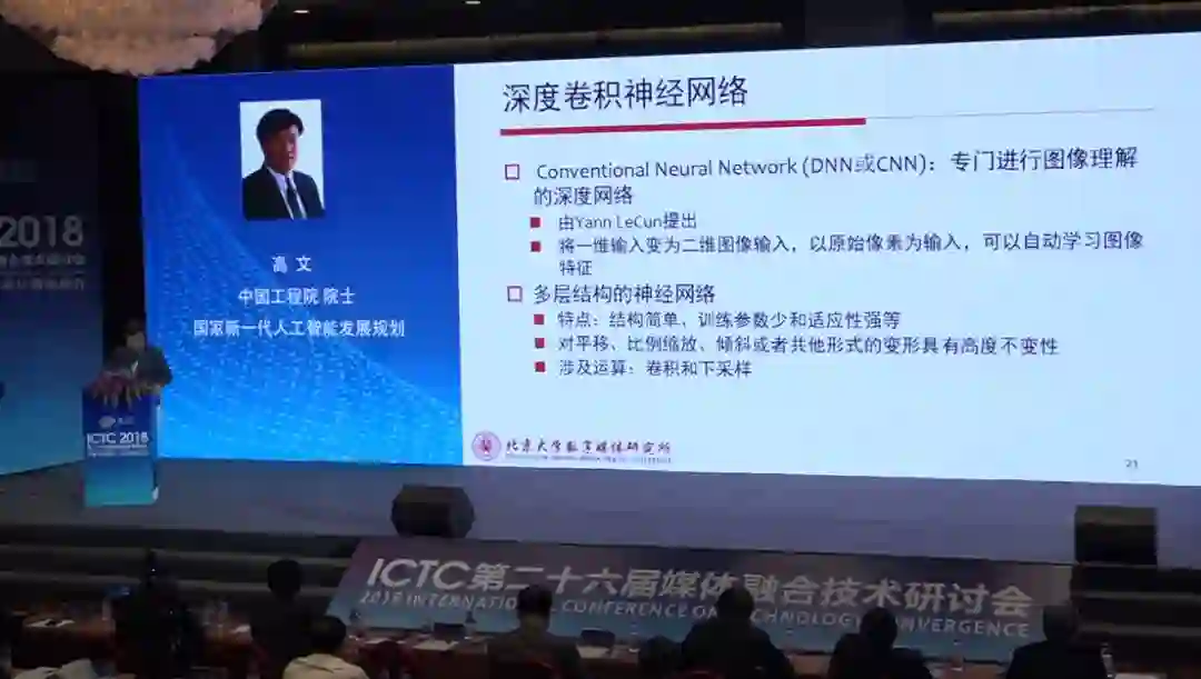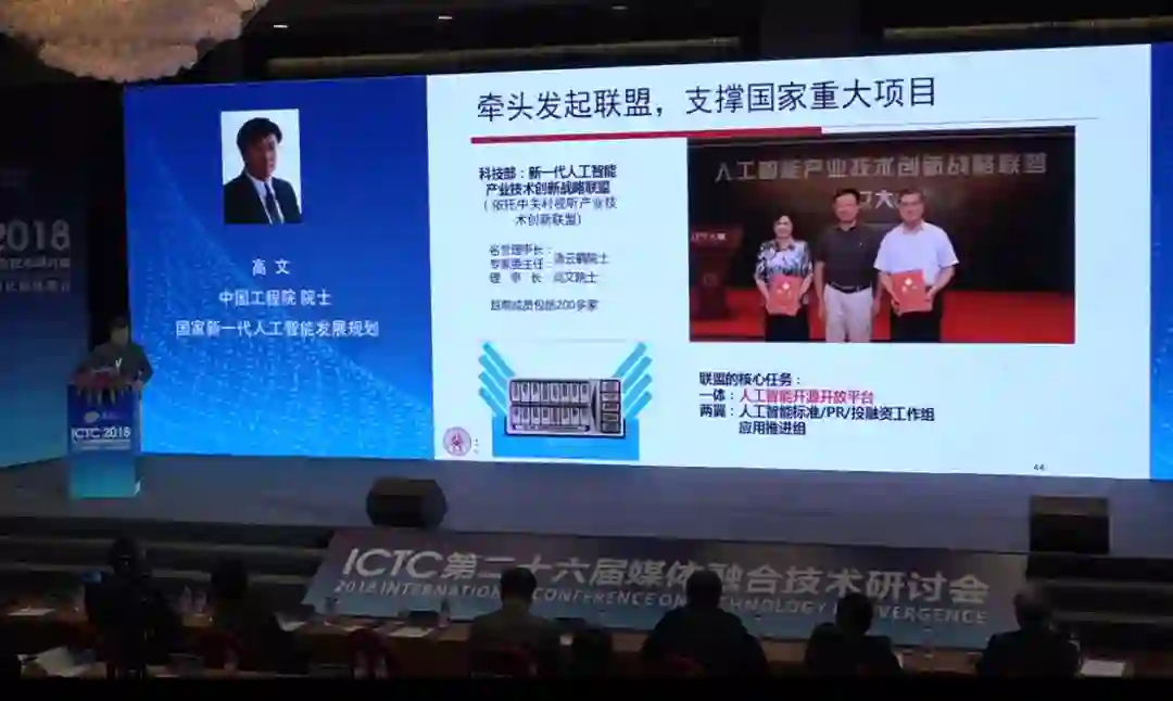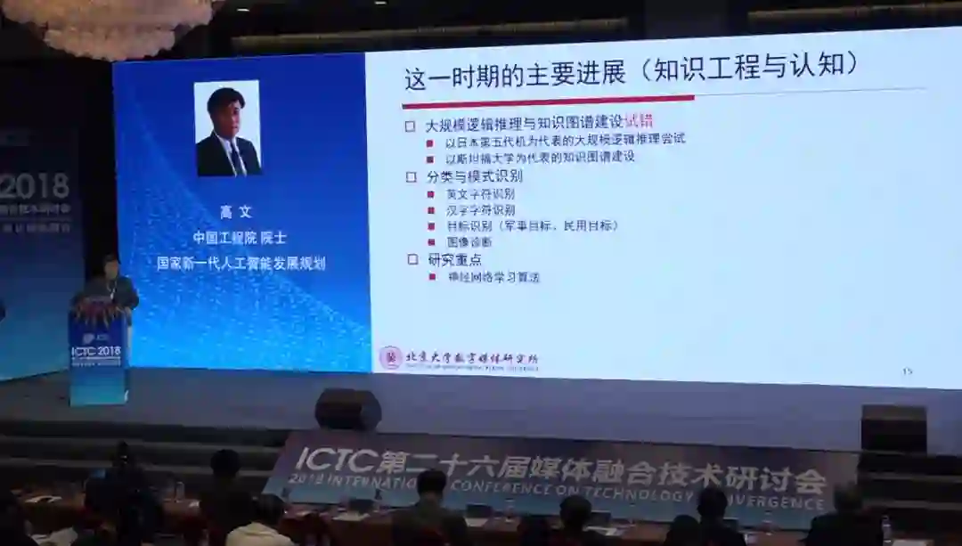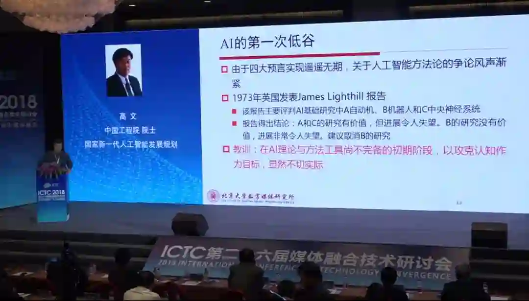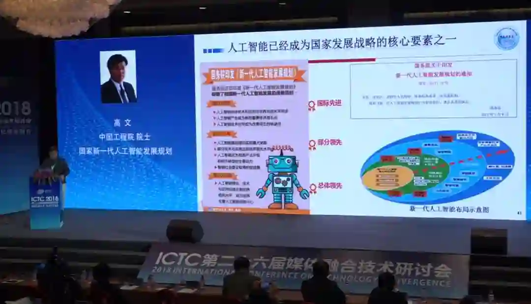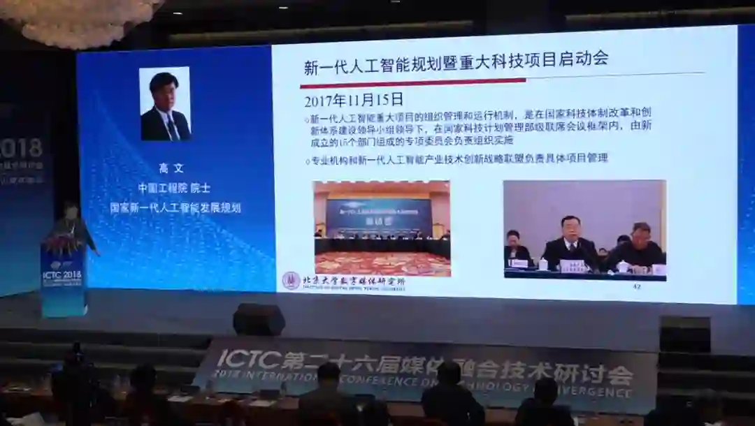 在会上,中国工程院院士高文院士发表演讲,人工智能的历史自1956年开始,至今已经62年。当时在Dartmouth大学进行了为期10个月的研讨,10位人工智能学者共同首次确定了人工智能的概念,让机器能像人类一样认知、思考并学习,这是首次采用计算机模拟人的智能。