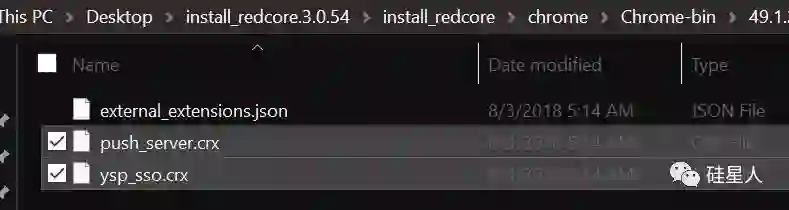 更诡异的是:下图可以看到,这个安装包里自带了两个兼容 Chrome 的插件(.crx 是 Chrome 插件的扩展格式):