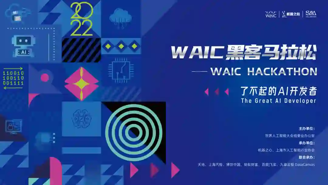 以「了不起的 AI 开发者」为主题,WAIC 期间唯一一场黑客松赛事「WAIC 2022 · 黑客马拉松」各赛道已全面开启!此次黑客松大赛由世界人工智能大会组委会办公室主办,机器之心、上海市人工智能行业协会、天池、上海汽检、博世中国、蚂蚁财富、百度 | 飞桨、九章云极 DataCanvas 公司承办。